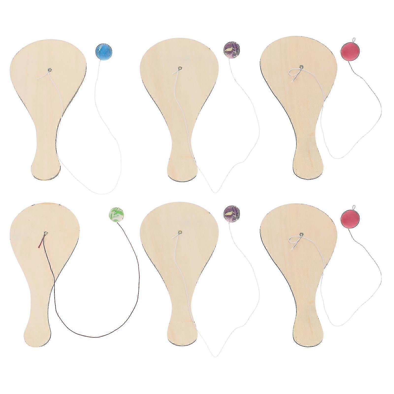 6pcs Wood Paddle Ball Game Indoor Outdoor Paddle Ball Toys Game For Children