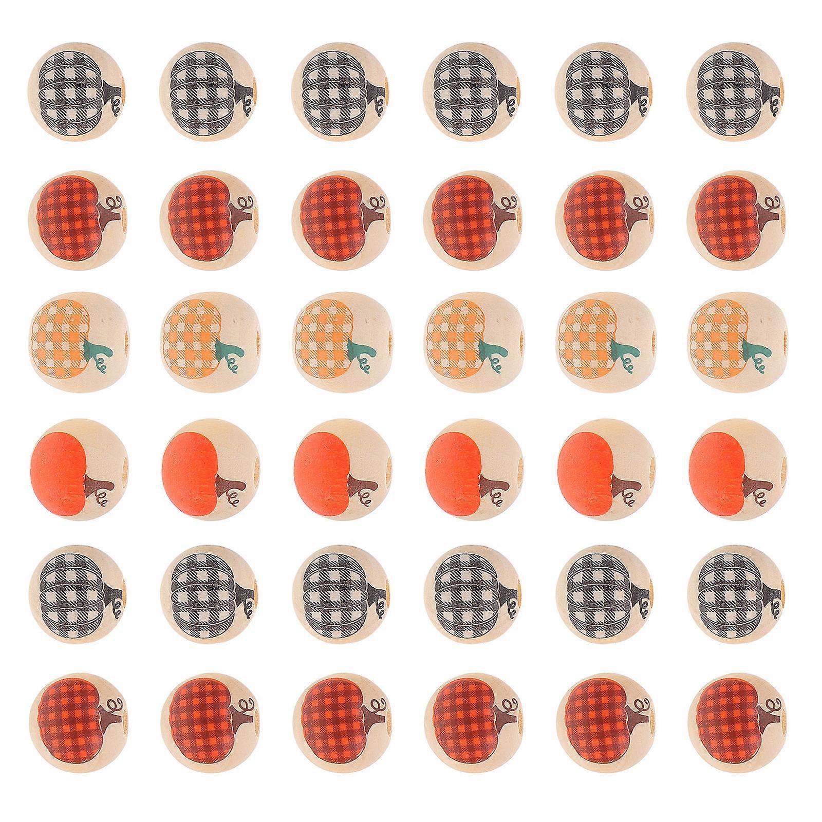 60pcs Halloween Wood Beads, Durable DIY Craft Beads with Pumpkin Patterns for Jewelry Making and Party Decorations