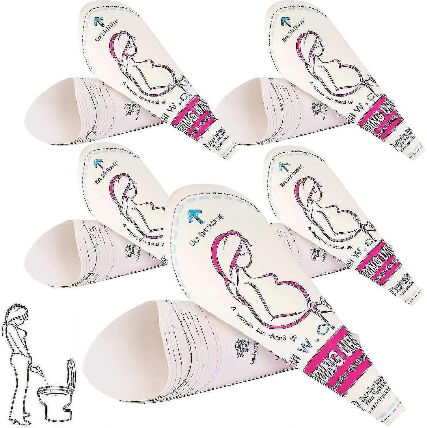 A WOMEN CAN STAND UPSpecially designed for female urination device, Standing pee disposable cups for women widely use in life - no more dirty toilets, inconveniences of pregnancy or injured people, go Anywhere, Anytime. Made for all ages and sizes women young girls. HIGH QUALITY WATERPROOF PAPER andamp LEAK FREEThe urinal funnel with a curved mouth is made of thick waterproof raw pulp paper, hygienic and safe, no deformation. With ergonomic design to fit your body snugly to make a reliable seal and prevent leaking. Specially design for girls up pee, you don't have to dropping your pants, no spilling and will not stain clothes. DISPOSABLE andamp PORTABLENo need to wash or put pack in bag dirty like bulky reusable plastic or silicon urinals. Disposable women pee funnel sanitary neat, no need to clean, no smell. Humanized design, easy to use and portable. Female outdoor pee cup very helpful especially if you're pregnant or if you are using public restrooms that are not clean or offering the toilet covers. NECESSITIES FOR OUTDOOR EVENTYou can take these disposable travel urinal for women to anywhere, music festive or grimy restroom. Ideal Accessory for Travelling, Backpacking, Camping, Travelling, Hiking, Walking, Running, Climbing, Mountaineering, Canoeing, Biking, Flying, Diving, Festivals and Other Outdoor Events. PLEASE NOTEIt is recommended that women who have not used female urination device, please practice several times at home.