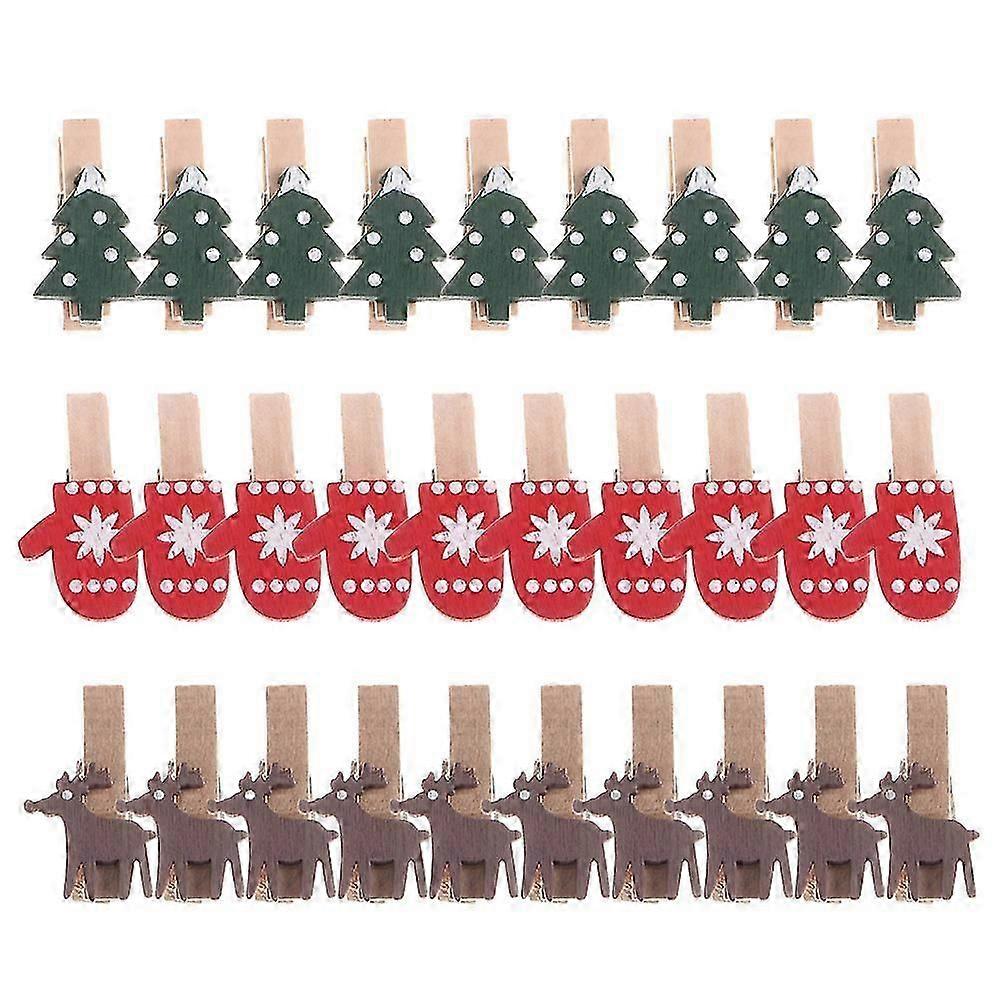 60 Pcs Smd Wooden Clips Christmas Gift Wooden Photo Clips Clothespins Christmas Tree Wooden Clip