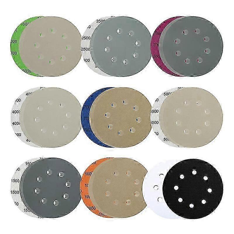 64 Pcs Sanding Disc, 5inch 8 Hole Sandpaper With 2 Interface Pads For Wet And Dry Polishing Of Auto