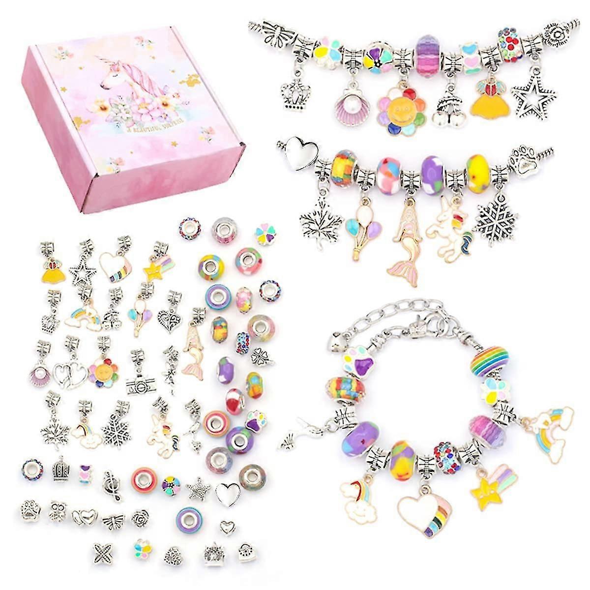64pcs Charm Bracelet Making Kit Gifts For Teenage Girls Gifts For 8-12 Year Old Girls Diy Bracelet Making Kits With Flat Beads Christmas Gifts