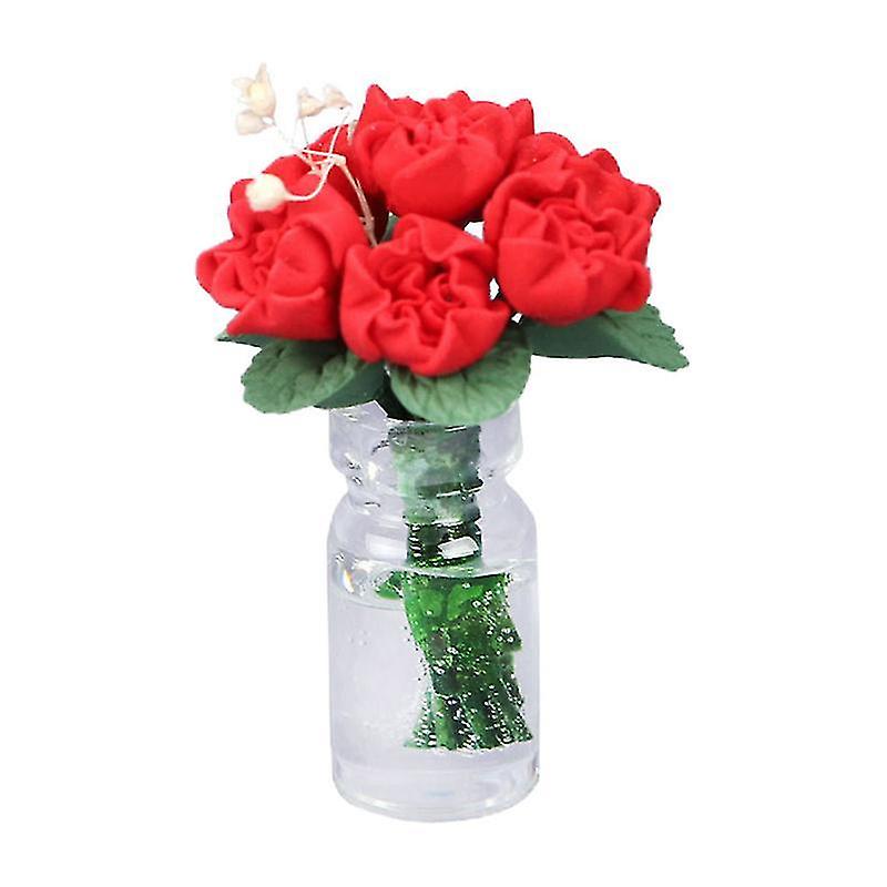 6.8X4.5cm Red Scale Model Kits Mini Rose Potted Adornment Mini House Decor Micro Landscape Flower Ac