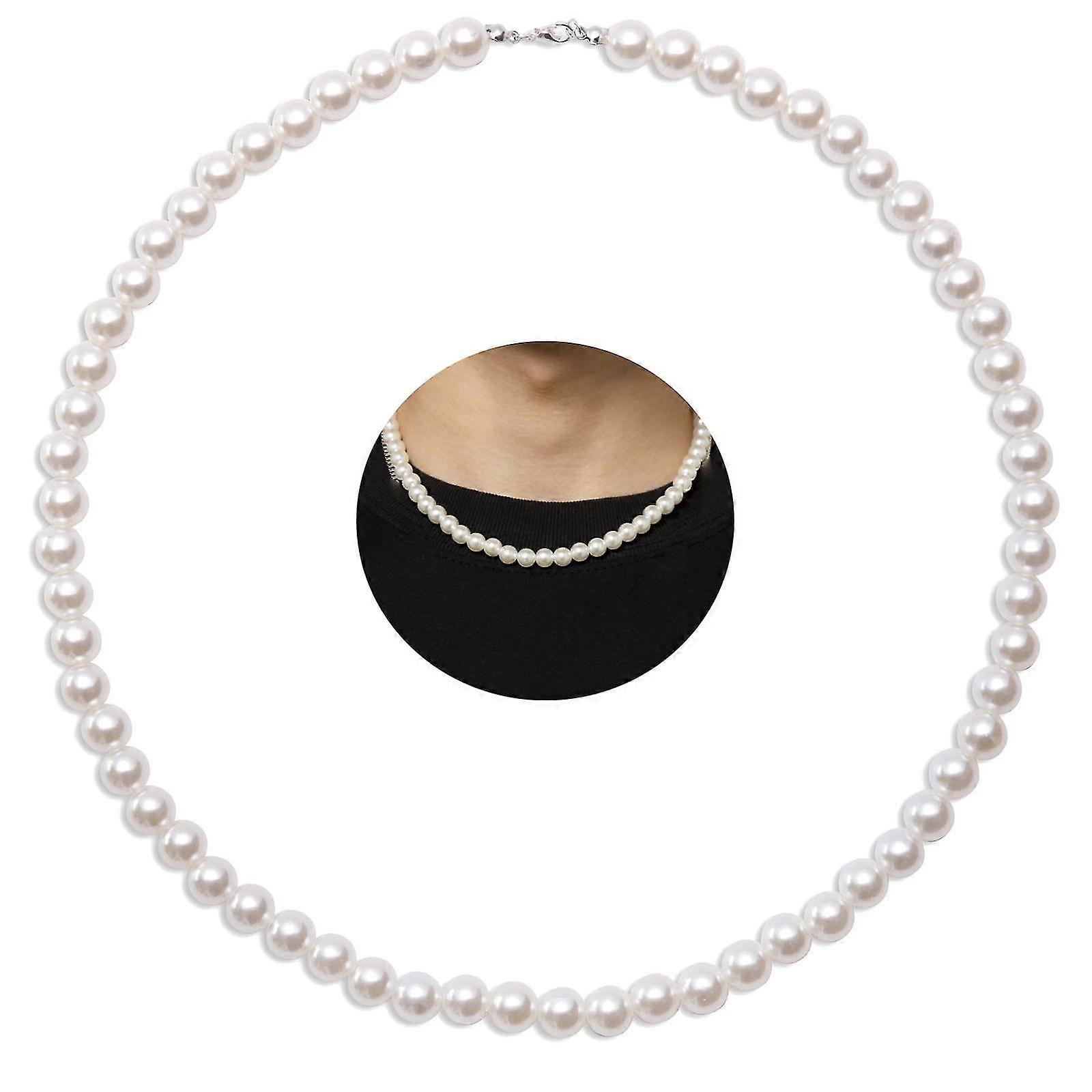 6mm-10mm Pearl Necklace For Men, Round White Pearl Necklace For Women, Pearl Choker Necklace Strand Pearl Jewelry Gift For Women