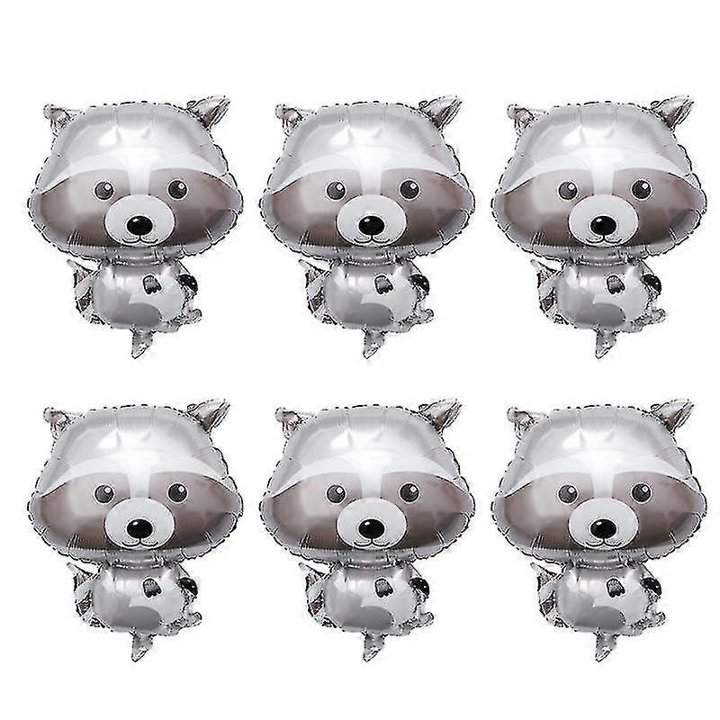 6pcs Cartoon Aluminum Foil Balloon Animal Raccoon Shaped Balloons Party Supplies For Birthday Christmas (raccoon)