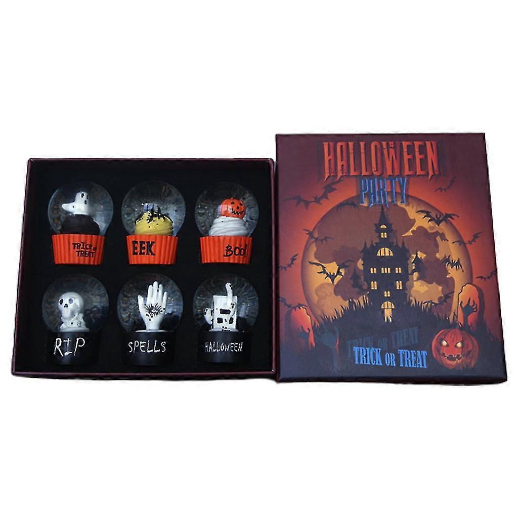 6pcs Crystal Ball Pumpkin Ghost Skull Ornament Resin Stand For Halloween Home Desktop Decoration Kids Gift