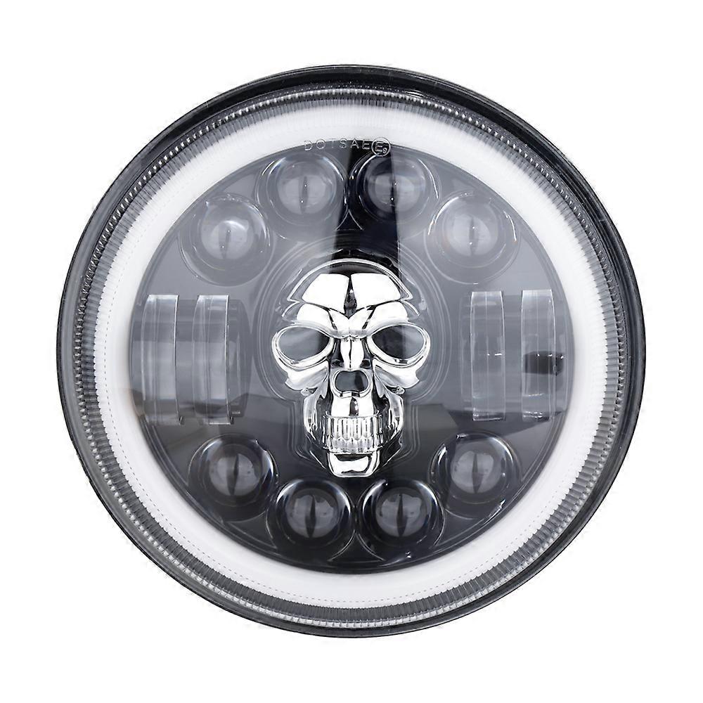 7 Inch Skull LED Headlight for Harley H4 DRL Round Angel Eye Yellow & White Turn Signal for Jeep Wrangler JK TJ Land Rover