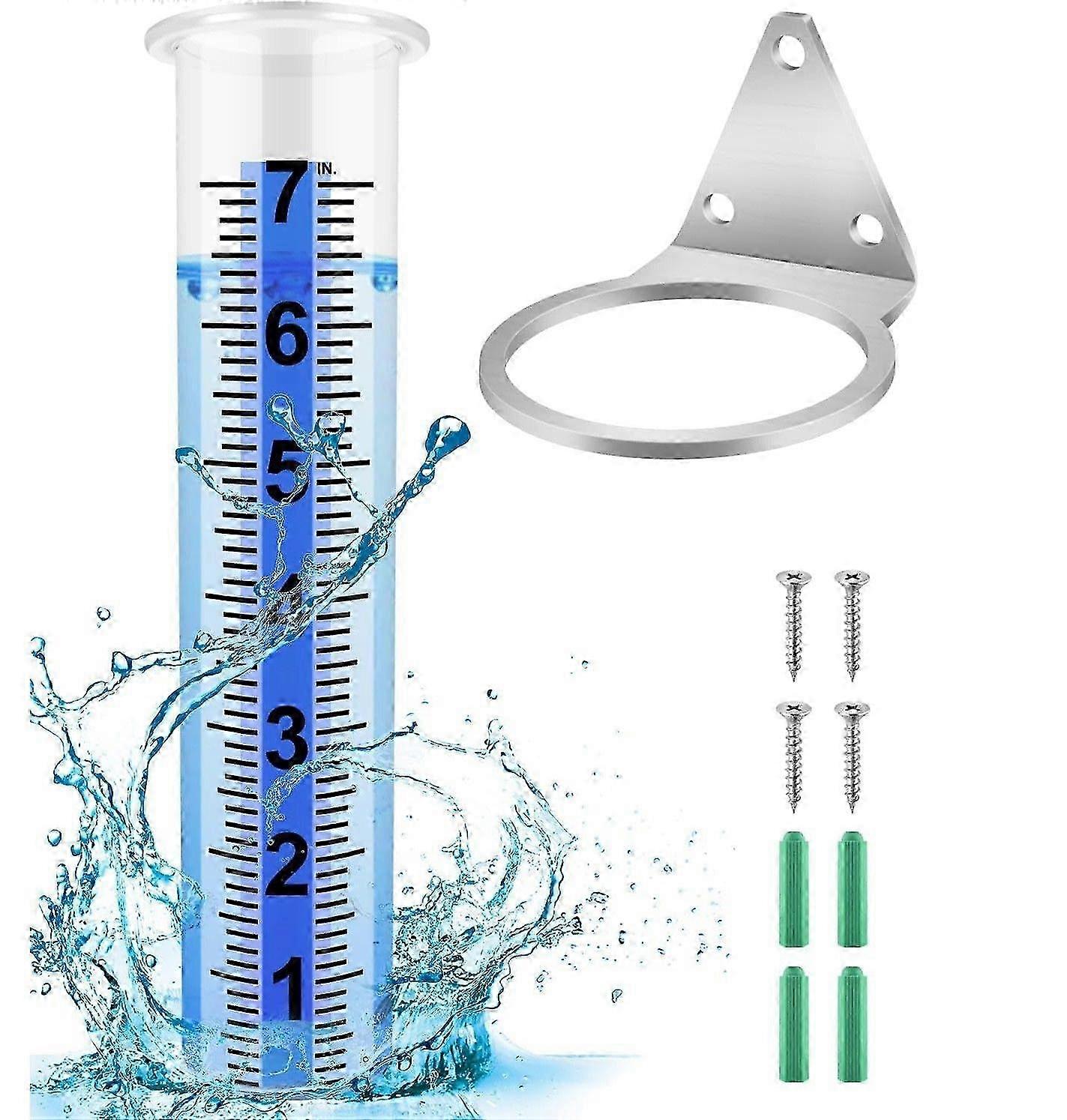 7" Large Capacity Rain Gauge Outdoor, Rain Gauge Replacement Tube with Stainless Steel Mounting Rack Holder for Garden, Deck, Lawn Yard, Patio, Pathwa