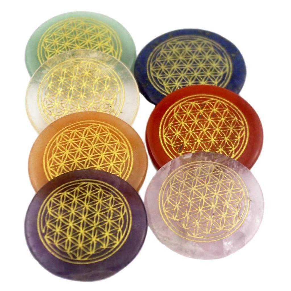 7pcs Natural Crystal Palm Stone Set Polished Engraved Circle Palm Crystal