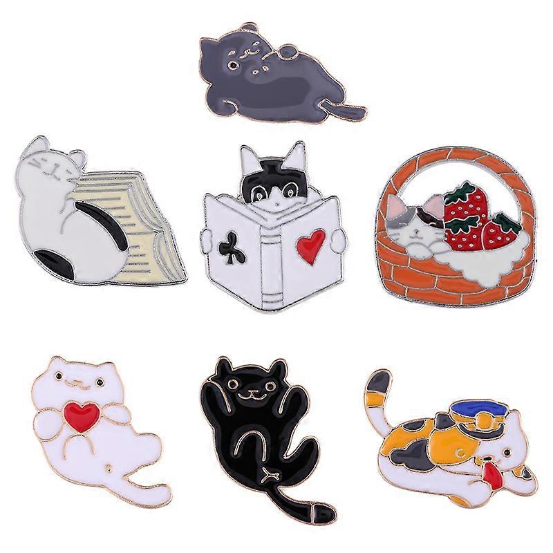 7Pcs Cartoon Cat Brooches Lapel Pin Animal Brooch Pins for Jackets Hats Decoration