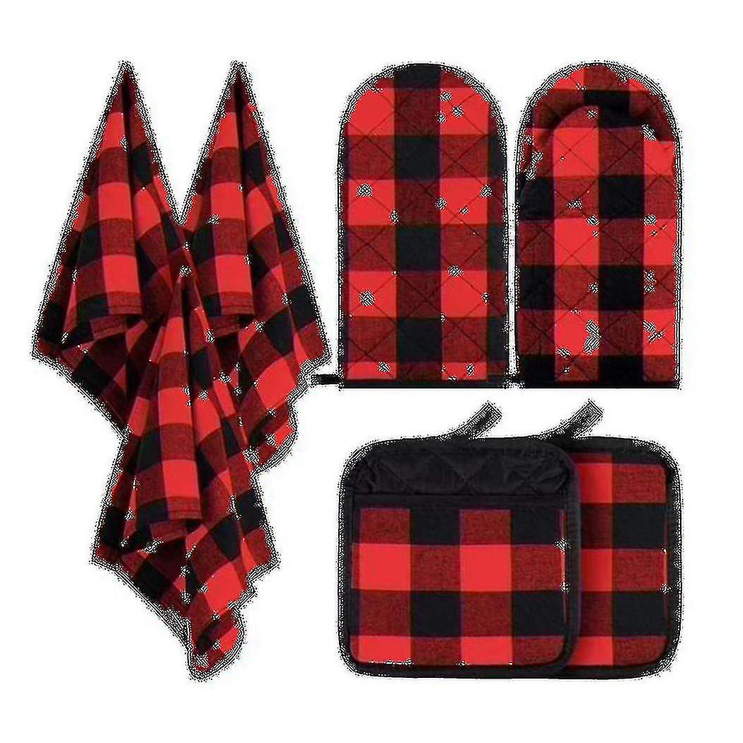 7 Pcs Check Dish Towel Pot Holder Oven Glove Set Non-slip For Cooking