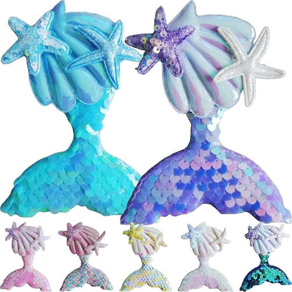 7pcs Mermaid Tail Patches Fabric Clothes Hairpin Applique Hair Clip Embellishments