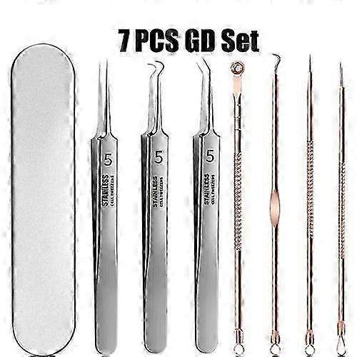 7 PCS Set Gold Professional ultra-fine acne removal blackhead tweezers beauty salon acne needle deep cleaning clip facial skin care tool
