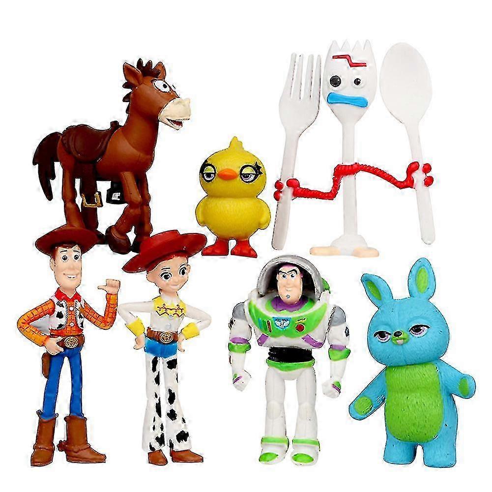7 mini Disney/ Pixar 4 characters together for extensive movie storytelling play Set includes Woody, Buzz Lightyear, Jessie, Slinky Dog, and so on figures.Iconic colors, whimsical styling and dynamic poses.Makes an exciting gift, start or add to your collection. Type: Action Figure ToyMaterial: PlasticQuantity: 7PcsFeatures: Collectible, Table/ Cake Decor, Non-toxicHeight: 4cm-7cm/1.57"-2.76" (Approx.)Notes:Due to the light and screen setting difference, the itemand 39;s color may be slightly different from the pictures.Please allow slight dimension difference due to different manual measurement.Package Includes:7 x Action Figure Toys Note: Due to the light and screen setting difference, the item's color may be slightly different from the pictures. Please allow slight dimension difference due to different manual measurement.