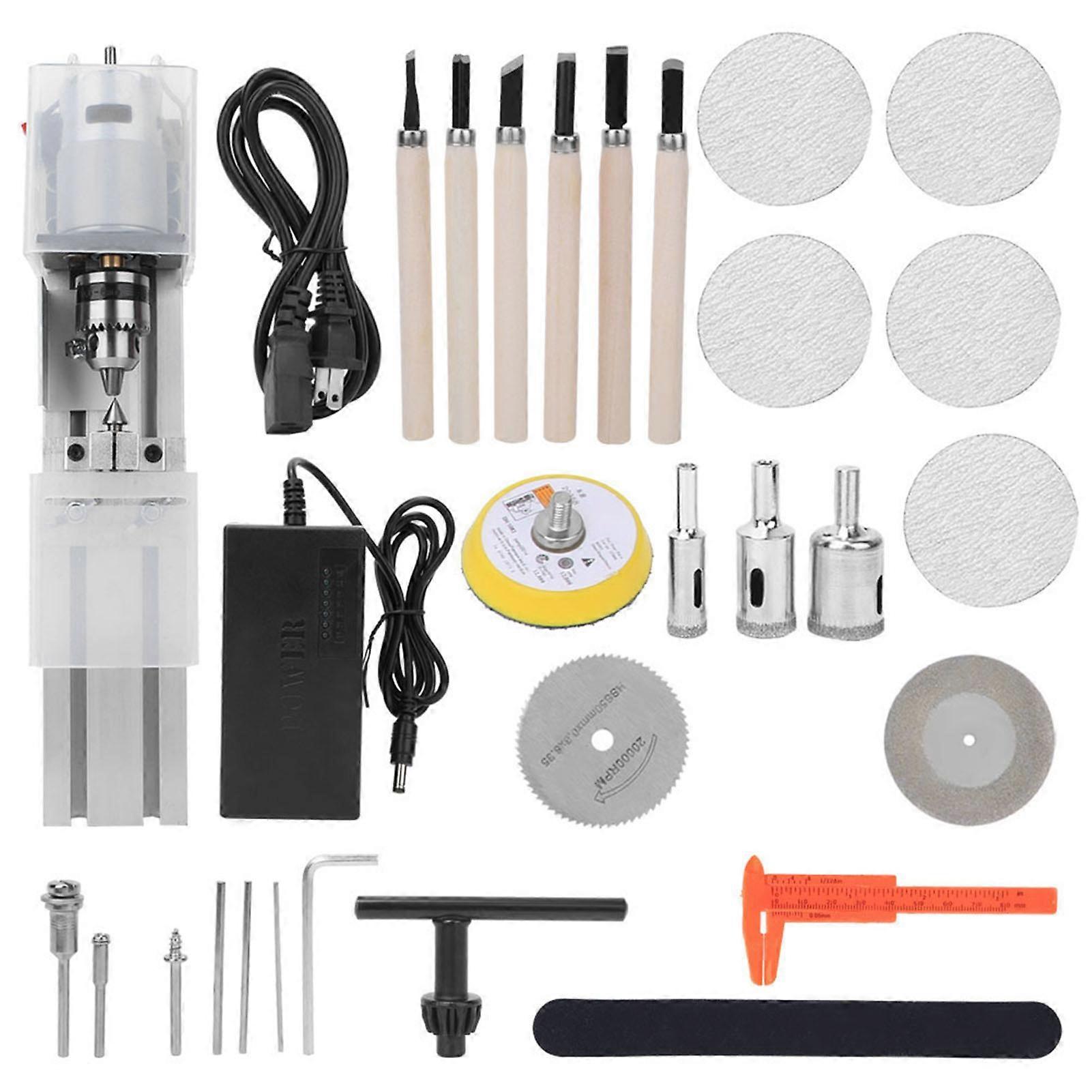 Mini Milling Lathe Machine 7-Level Speed Regulation DIY Woodworking Polishing Grinding Tool 100-240VUS Plug