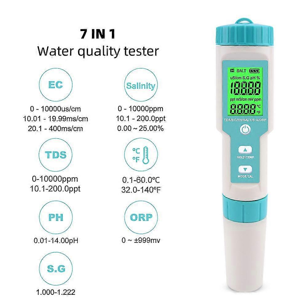 7 In 1 Ph Meter Tds Ec Orp Salinity S. G Temperature Meter With Backlight 25-26