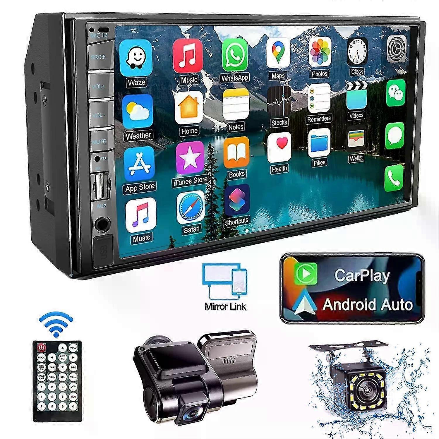 7 Inch Car Radio Stereo 2 Din Touchscreen Car Video Player with Dash Cam and Backup Camera for use with various brands, Bluetooth Navigation
