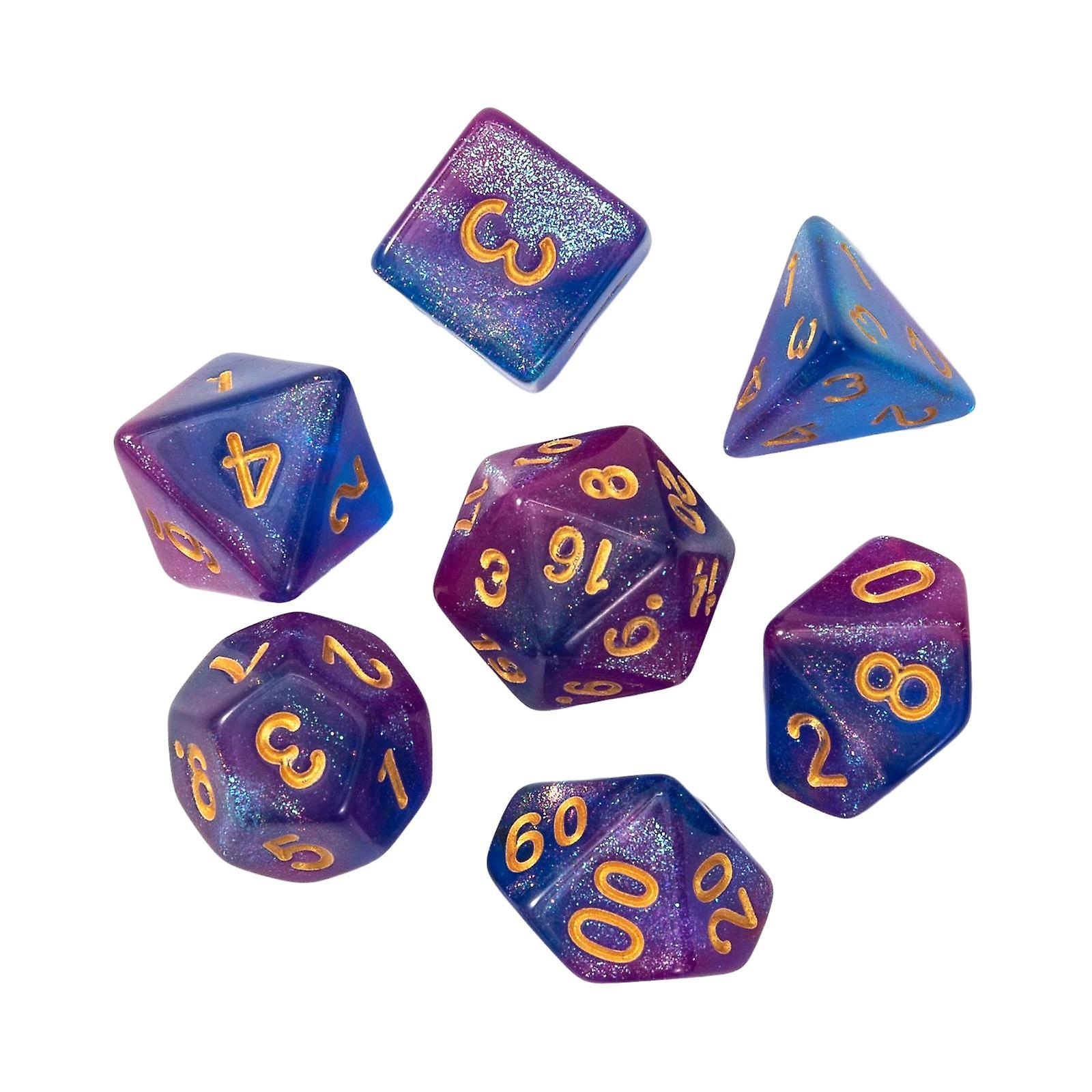 7 Pieces D4-d20 Multi Sided Dices Bar Toys for Math Teaching Table Games Violet Blue