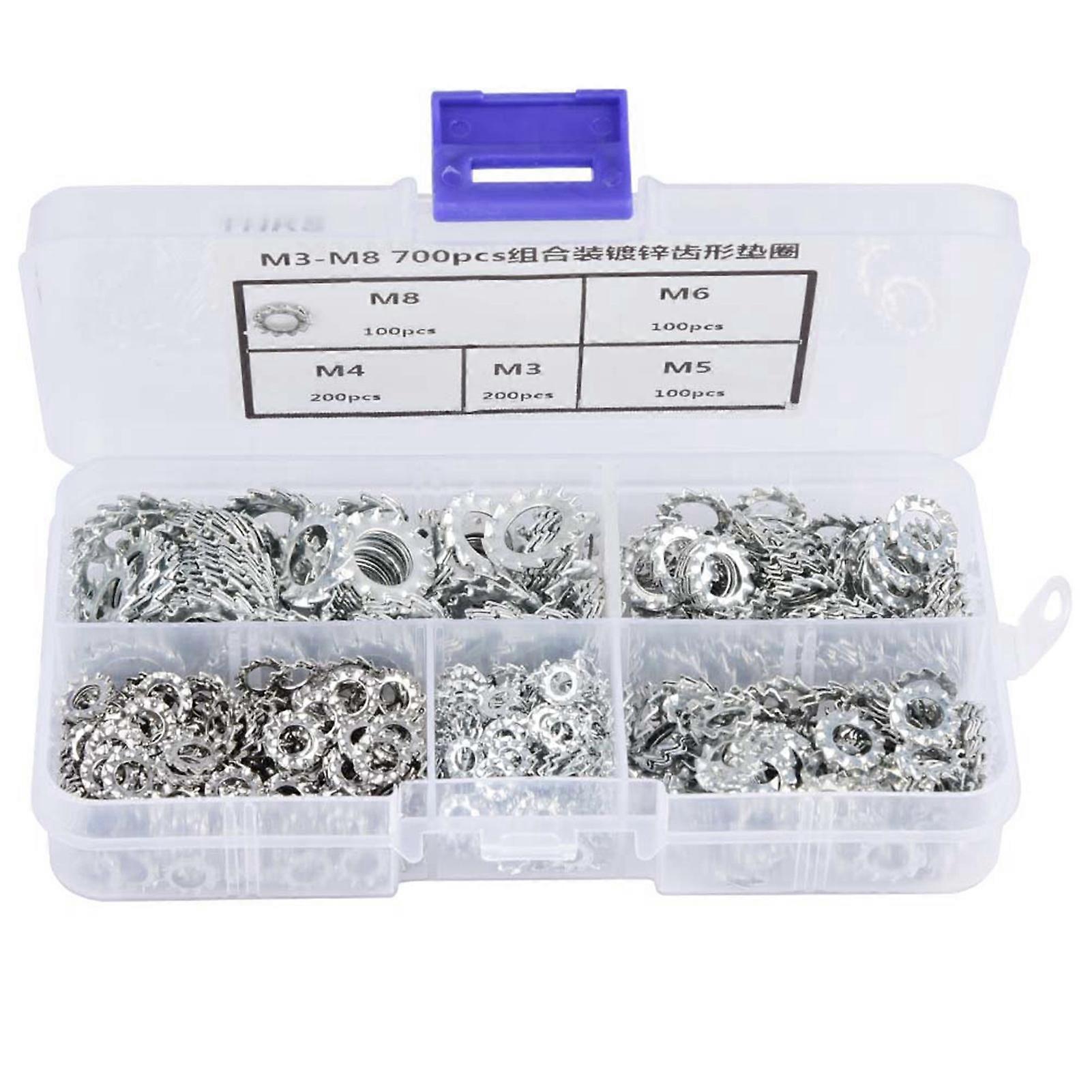 700pcs Galvanized Serrated Toothed Lock Washer Flat Set Fastening Tool M3/M4/M5/M6/M8