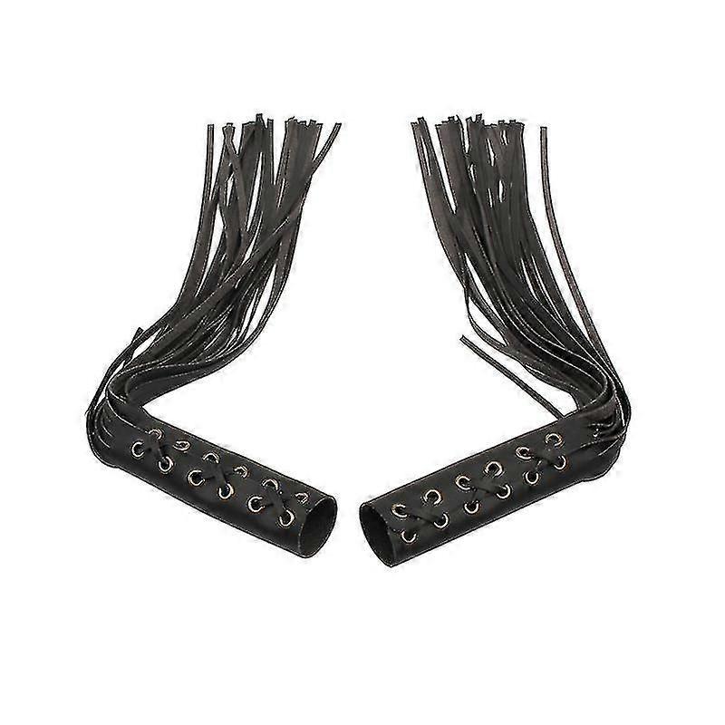 7/8 Inch Universal Motorcycle Handlebar Grips with Leather Fringe Cover, Vintage Black Hand Grip Accessories