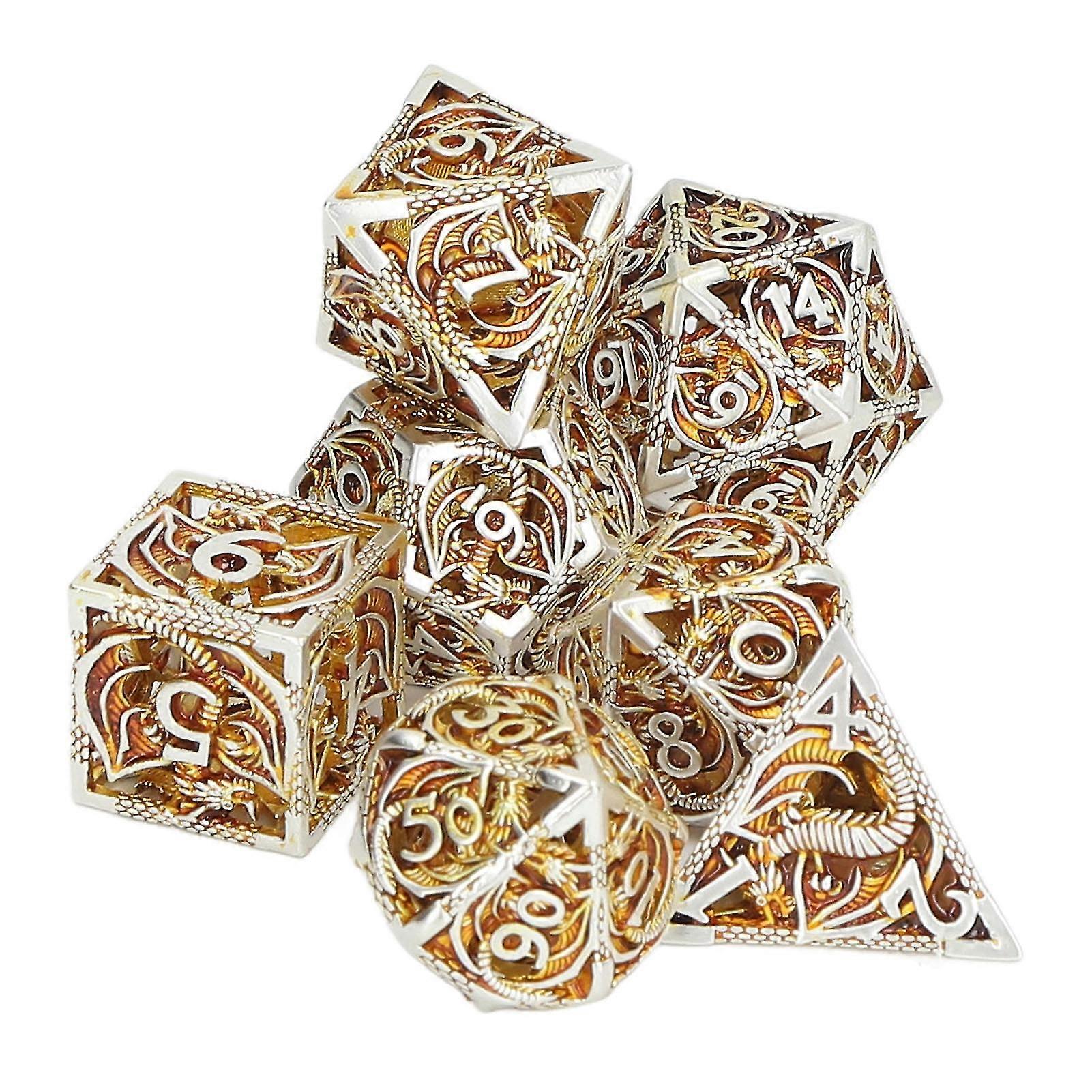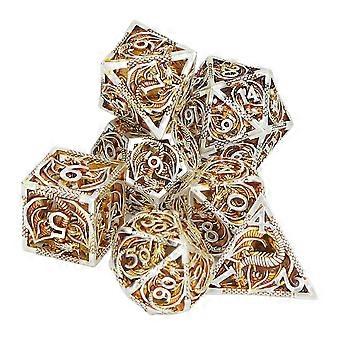 7pcs Hollow Metal Dice Set Clear Number Polyhedron Dices Set compatible with Tabletop Role Playing Games Gold