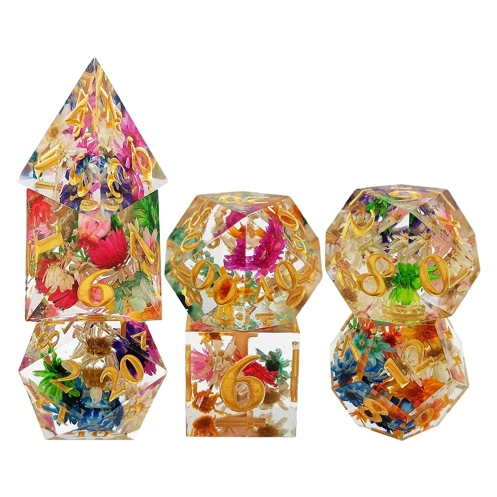 7x Polyhedral Dices Set Transparent Flower Engraved Game Dices for Parties