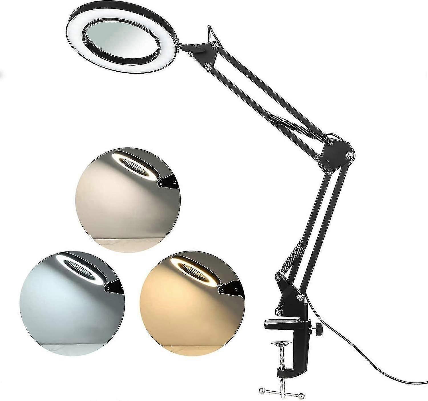 8 X Magnifying Light, Magnifying Light, Reading Magnifier Table Lamp With Clip, 3 Color Modes, 10 Le
