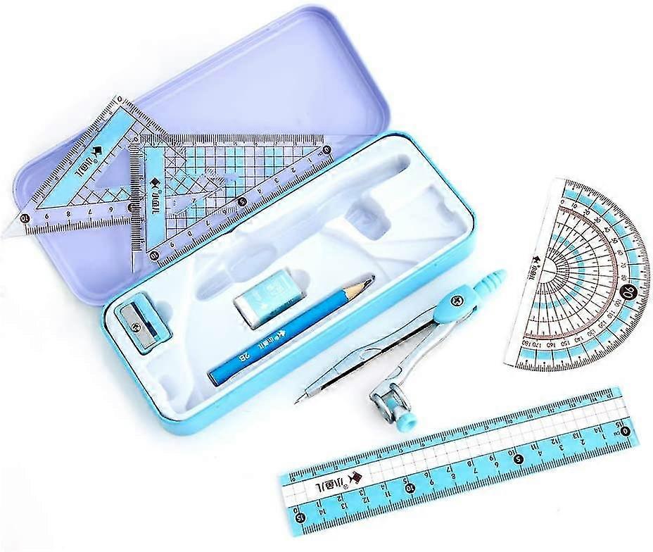 8 Pack Compass/math Set Compatible For Students With Shatterproof Storage Box, Geometry Set Compatible For School, Includes Ruler, Protractor, Compass