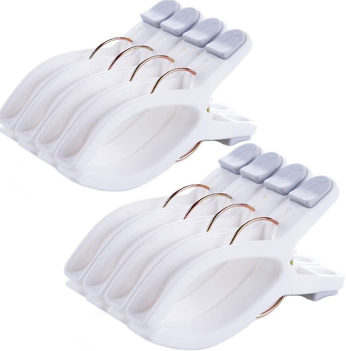 8 Pack Beach Towel Clips For Beach Chairs White Jumbo Size Towel Clamps Lounge Pool Chairs Plastic Clothes Pegs Hanging Clip Clamps Large