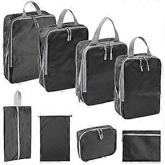 8pcs/set Beige Travel Storage Bag, Minimalist Polyester Foldable Storage Bag For Travel