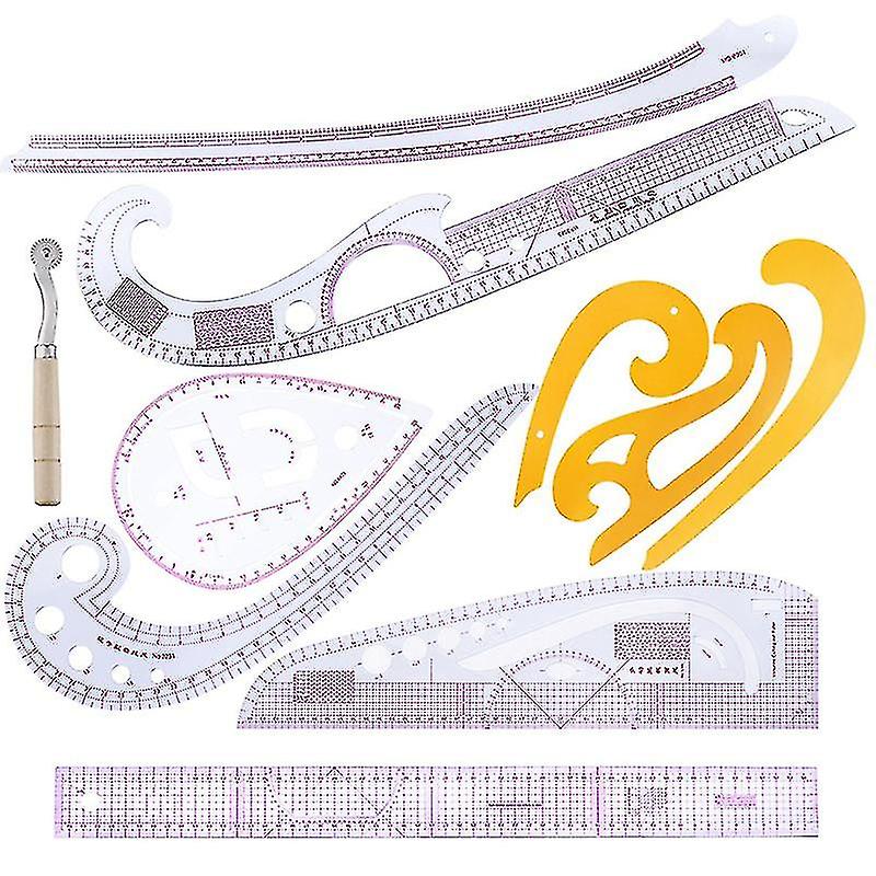8pcs Plastic French Curve Measure Pattern Grading Rulers Stick Pattern Design Dressmaking Tailor Se