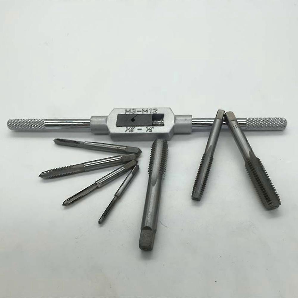8pcs Thread Metric Machine Hand Screw Thread Plug Taps Set M3 M4 M5 M6 M8 M10 M12 with 1pcs Adjustable Tap Wrench 1/16-1/2''