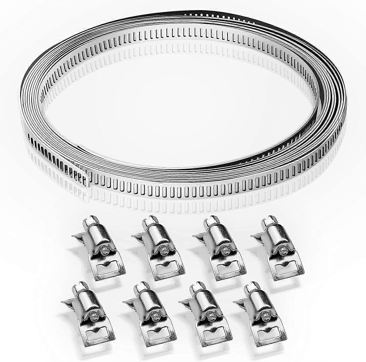 8 Pieces Stainless Steel Hose Clamps Metal Hose Clamps Adjustable Hose Clip Fasteners For Hose Fixing Included300x0.8cm-MXBC