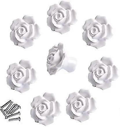 8pcs Elegant White Rose Pulls Flower Ceramic Cabinet Knobs Cupboard Drawer Pull Handles