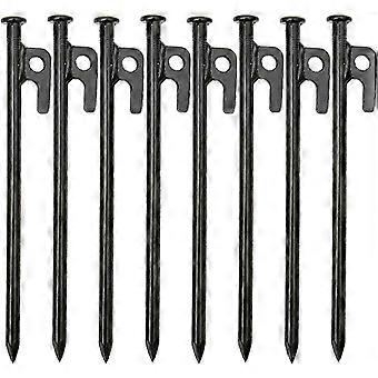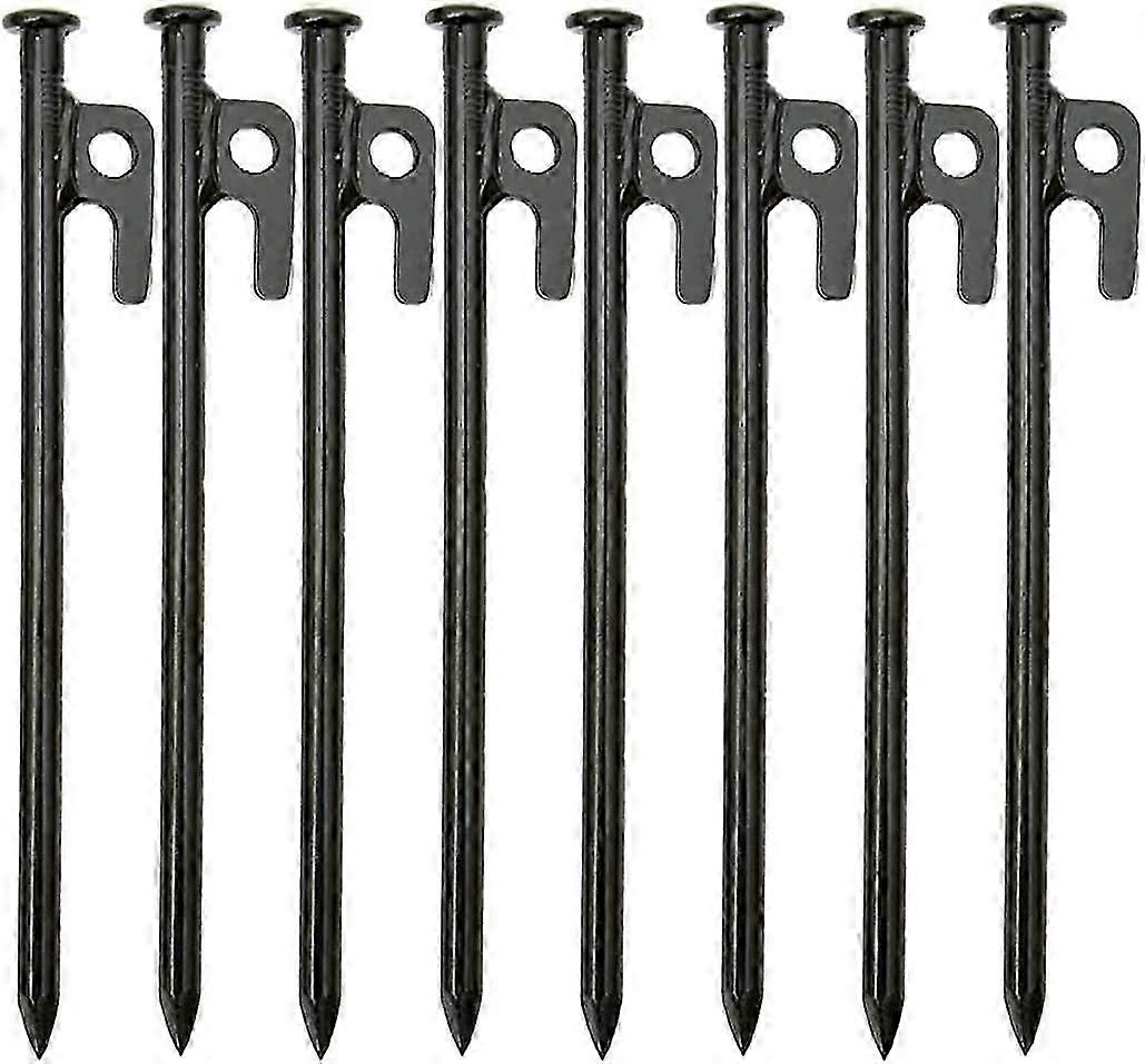 8 Pieces Heavy Duty Tent Pegs, 20cm High Strength Wrought Iron Camping Tent Stakes with Hook and Hole for Outdoor Travel Hiking Gardening Large Rocky