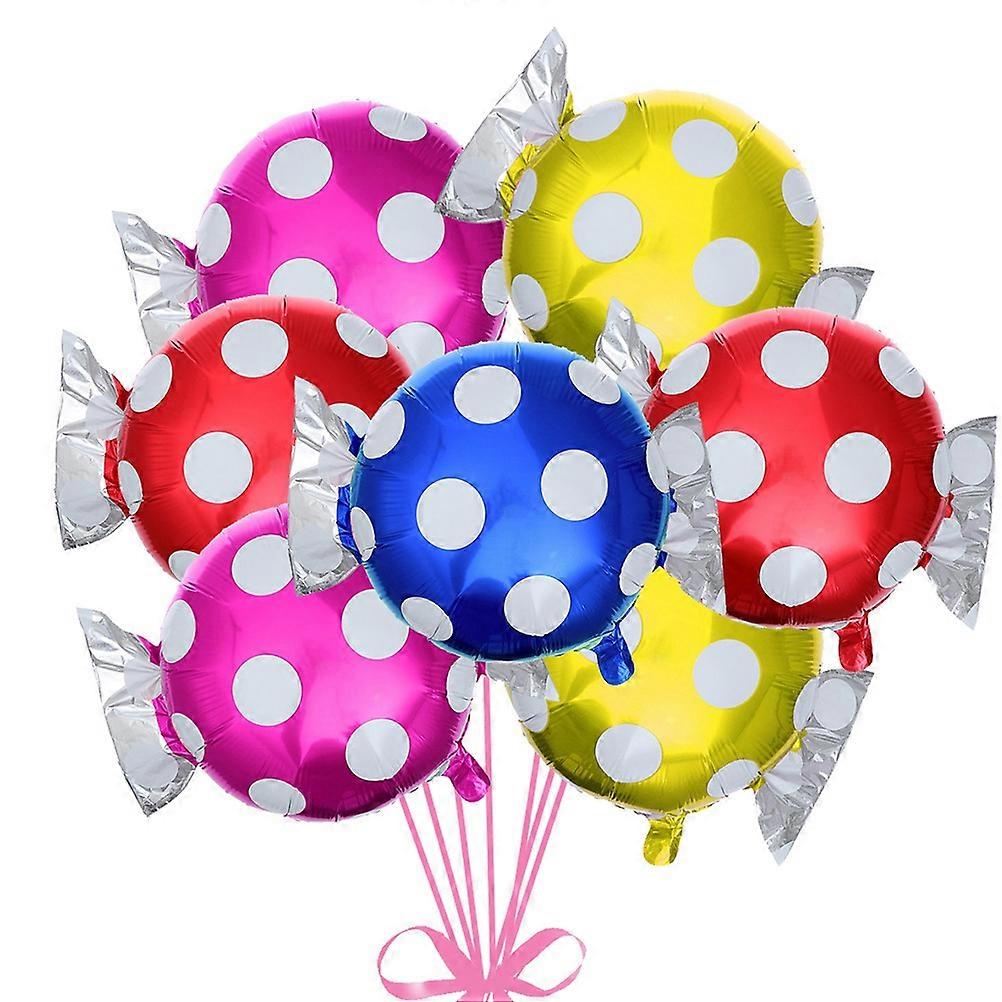 8 Pcs Candy Shape Helium Balloons Sweets Aluminum Balloons Round Foil Balloon Stripes and Spots Sweets Mylar Balloon for Party Wedding Ceremony