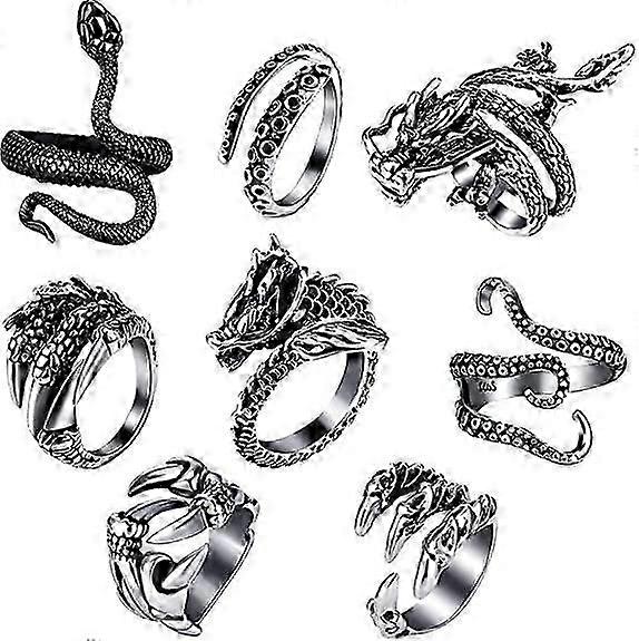 8 Pieces Vintage Punk Rings Octopus Dragon Snake Adjustable Ring