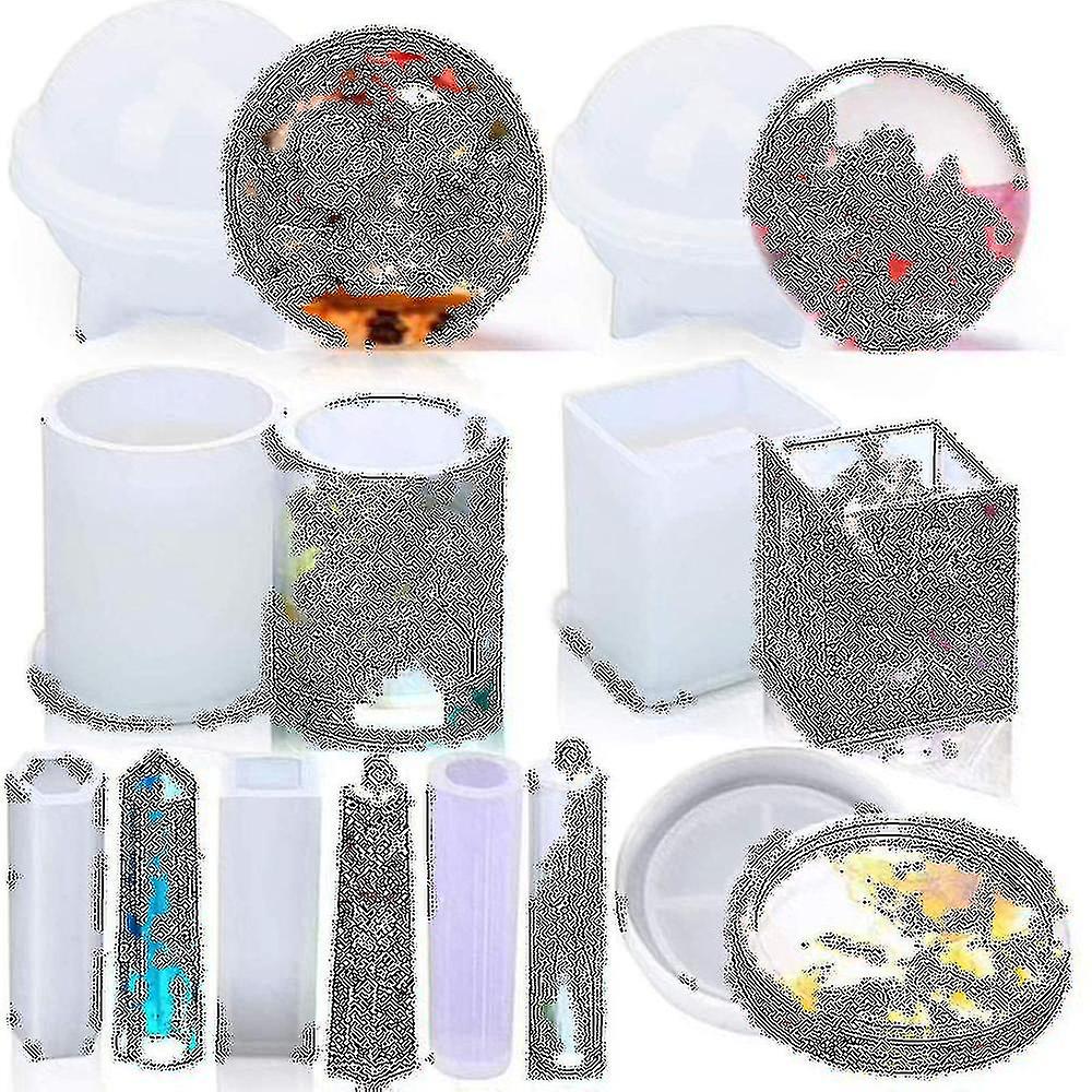 8pcs Silicone Epoxy Resin Casting Art Molds Include Round, Square, Sphere, Pendant, Coaster For Diy