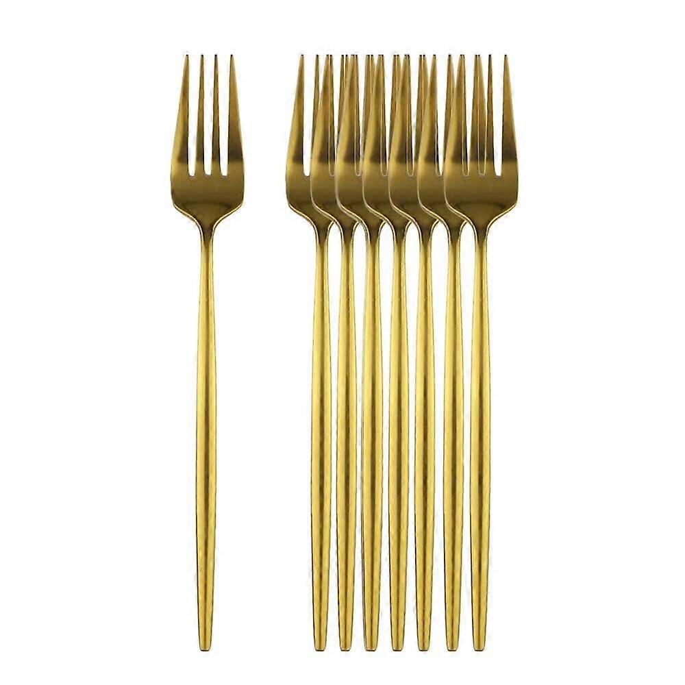 8Pcs Black Gold Dinner Forks, Stainless Steel Tableware, Silverware for Kitchen Dining & Daily Use