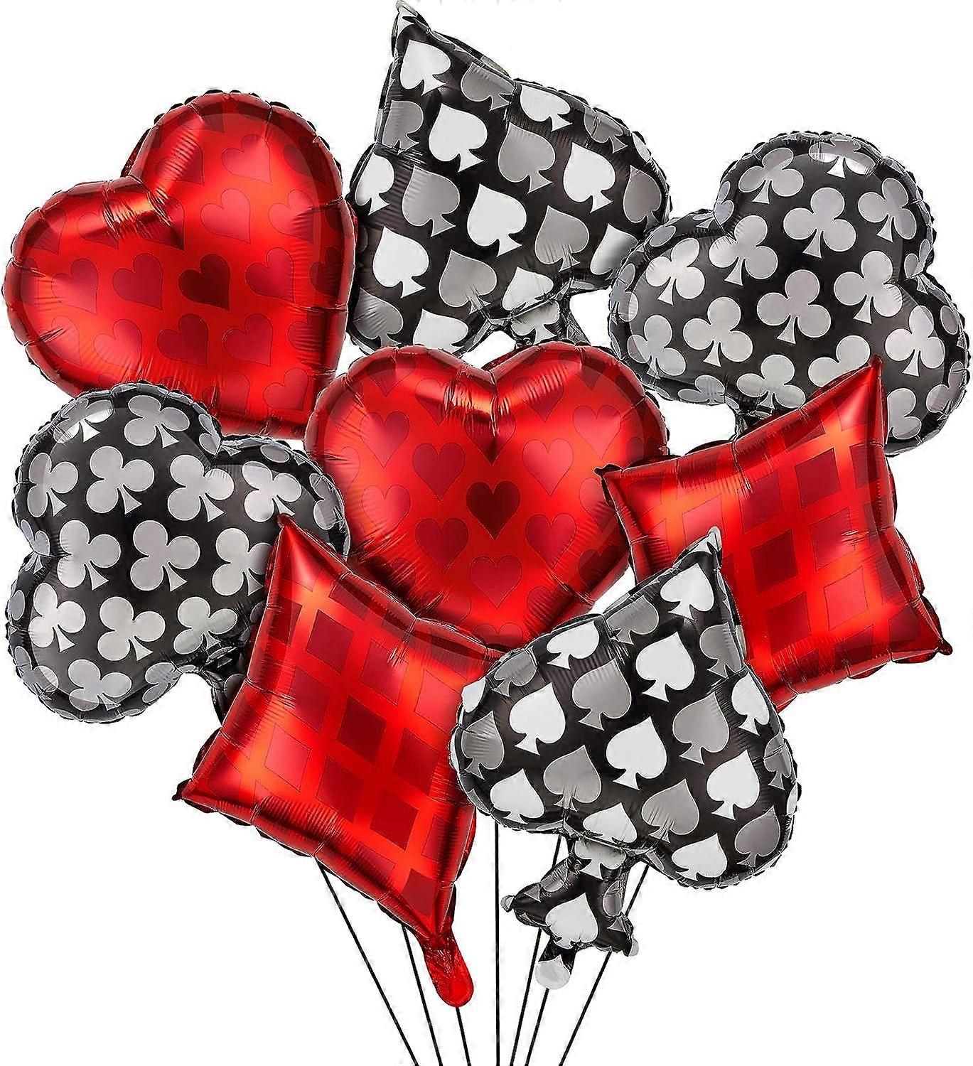 8 Pieces Casino Theme Party Balloons Playing Cards Balloons Casino Foil Balloons Casino Party Decoration Supplies for Las Vegas Party, Poker Events
