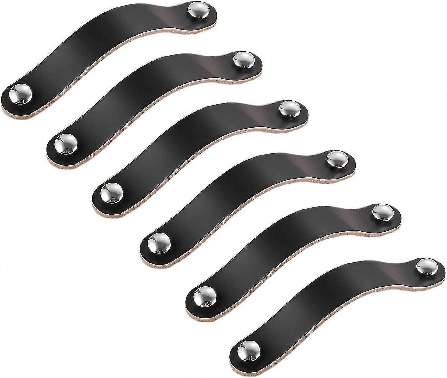 8 Pieces Black Leather Handles 96mm Leather Cabinet Pulls, Drawer Pulls, Cupboard Pulls Leather Handles For Cabinet Drawer Furniture