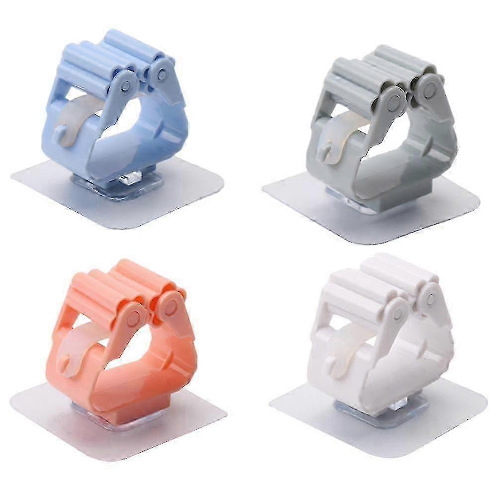 8PCS Mop Broom Holder Wall Mounted,No Drilling Mop Brush Holder Self Adhesive,Cleaning Products Organiser for Kitchen Garden Bathroom Garage ( 4Colors