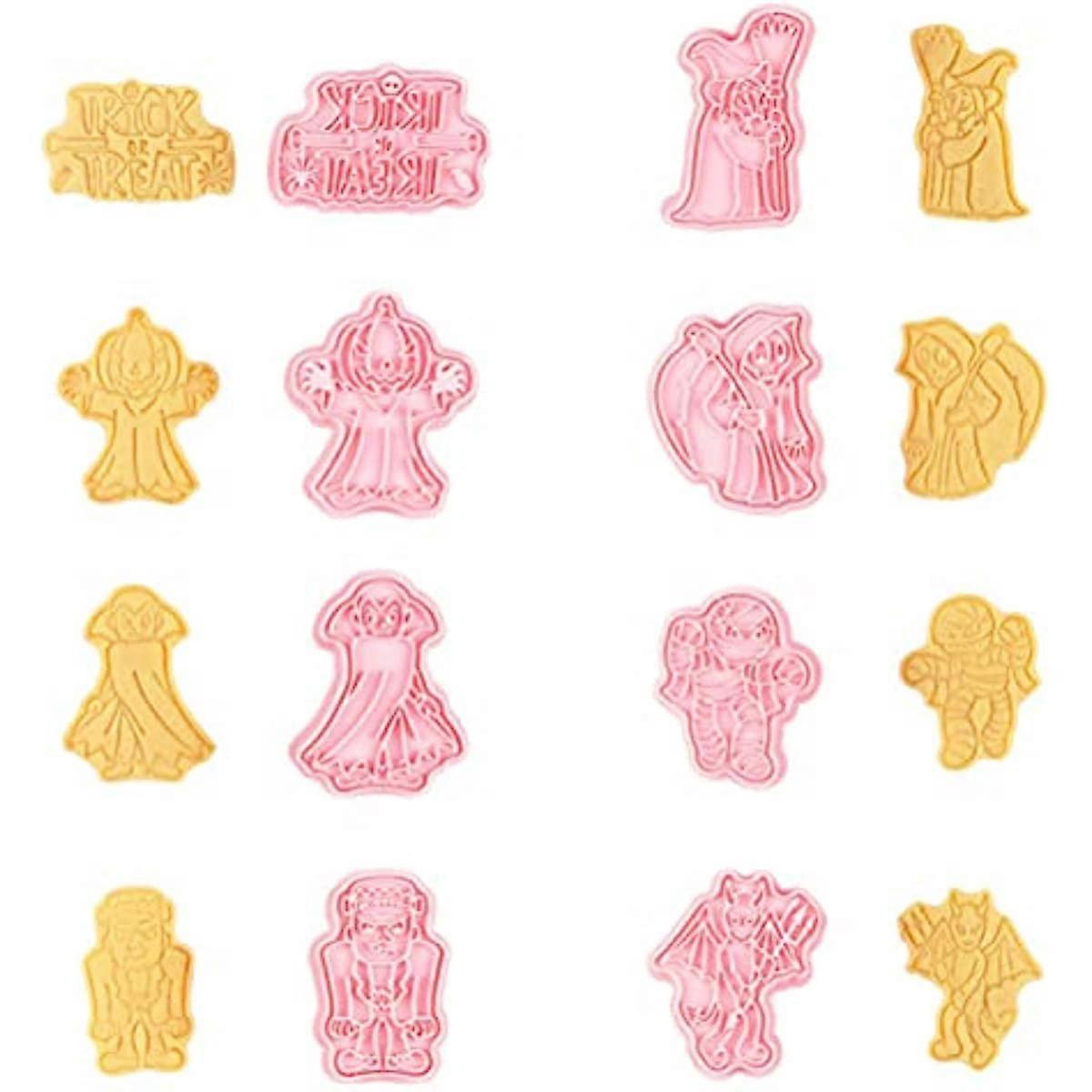 8 Pieces 3D Cookie Cutters Cookie Baking Mould Cookie Cutters Halloween Cartoon Biscuit Mould Fondant Baking Tool Baking Mould DIY Hand Press Biscuit