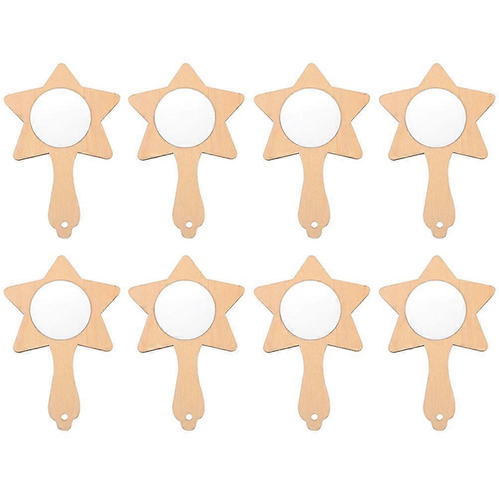 8Pcs DIY Wooden Handheld Mirror Unfinished Mirror Unpainted Makeup Mirror for Kid