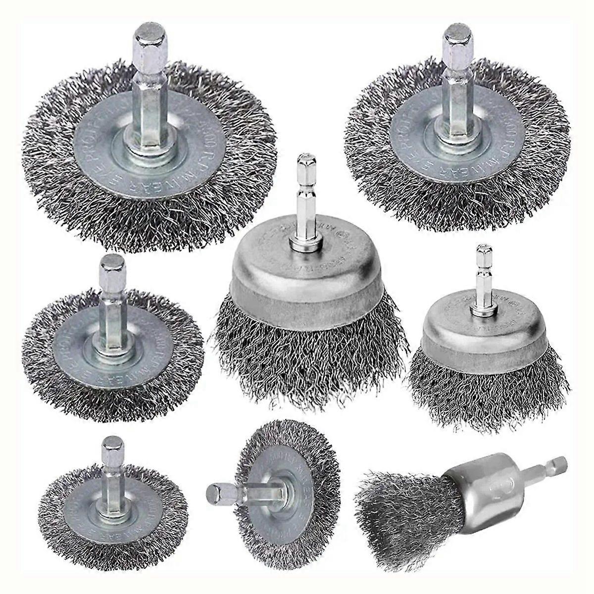 8 Piece Wire Brush Wheel Cup Brush Set 1/4Inch Hex Coarse Crimped Carbon Steel Wire Wheel for Rust