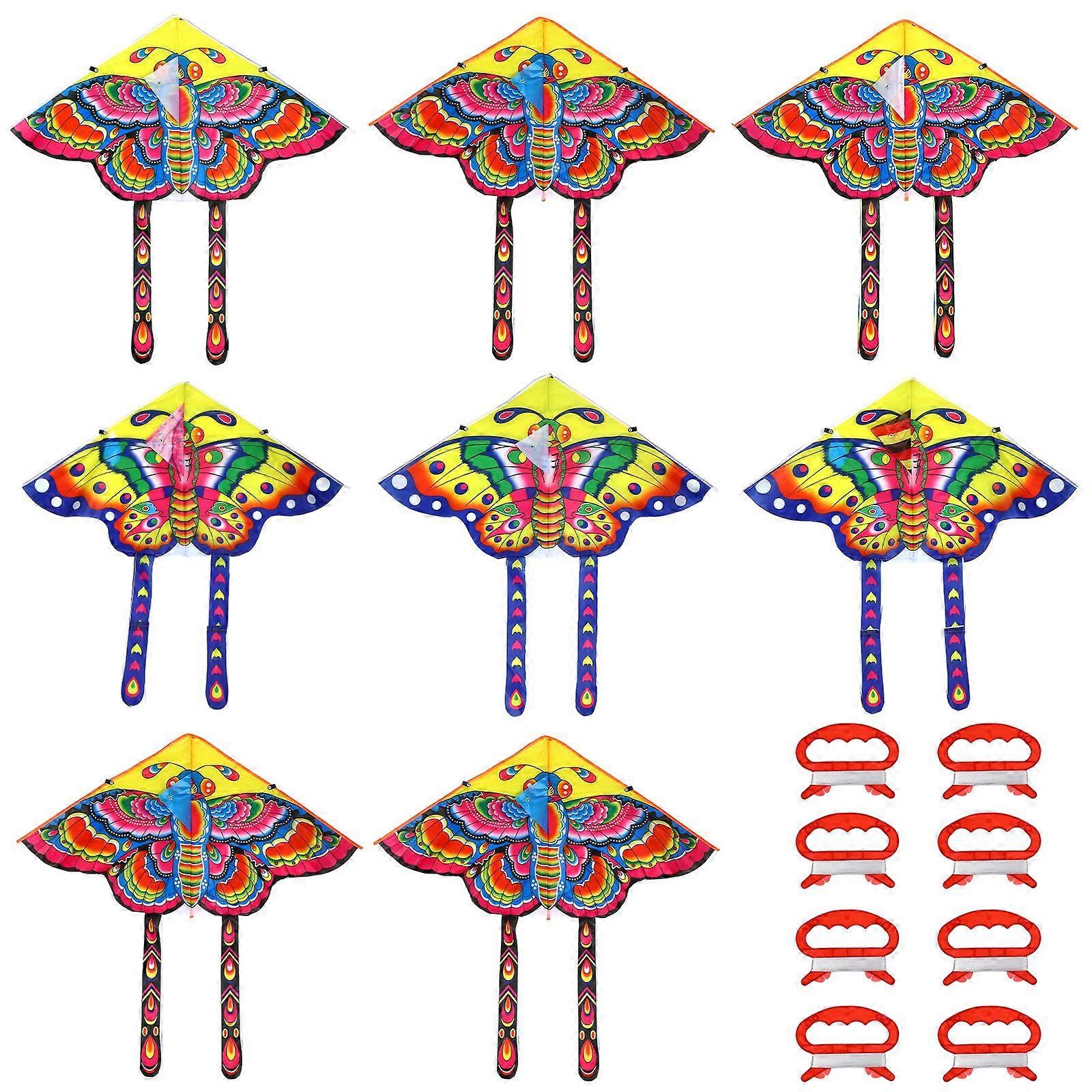 8 Sets Kids Cartoon Butterflies Kite Easy to Fly Triangle Kite with 30M Rope