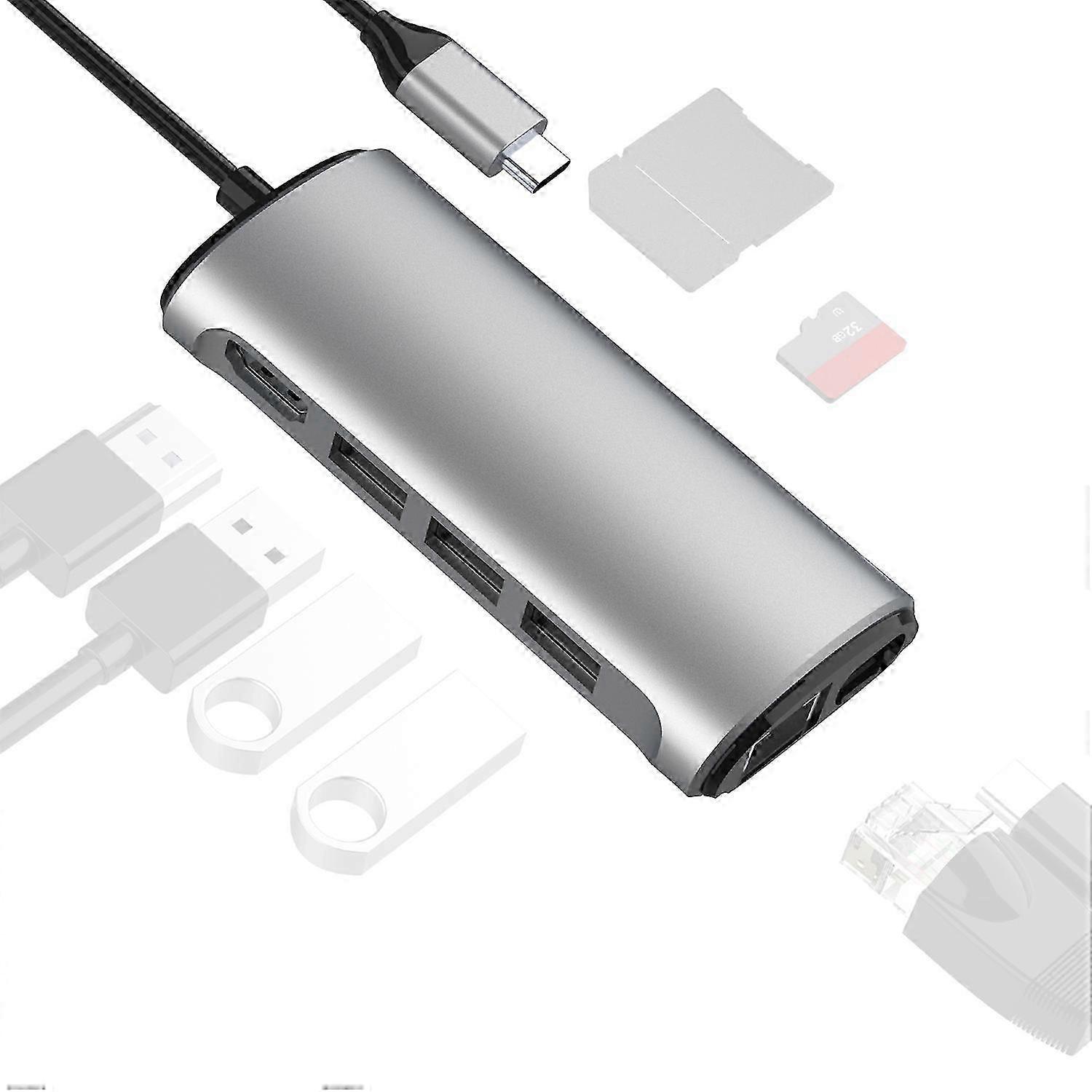 8 in 1 Type-C Hub Dongle Compatible with Certain Brands, featuring HDMI 4K@60Hz, RJ45 Ethernet, 100W Power Delivery, SD and TF Card Support