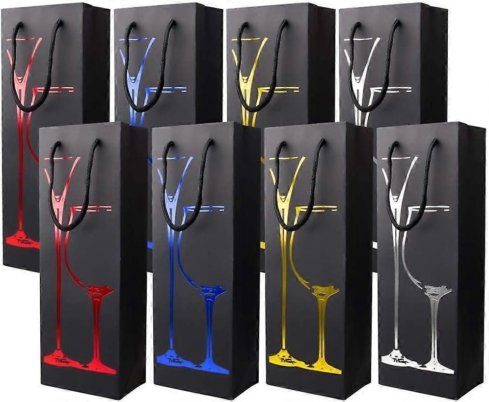 8 pcs Wine Gift Bags, Premium Wine Champagne Paper Stylish Holographic Wine Bag with Strong Rope Handles for Wine Gifts