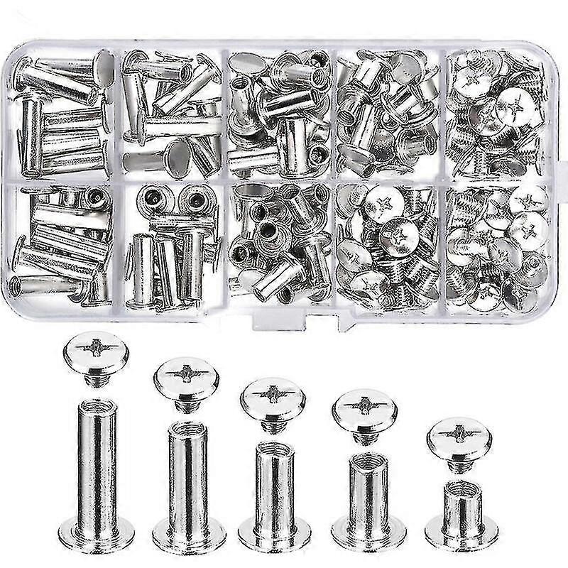80 Pcs 5 Sizes Metal Binding Screws, Chicago Screws, Stainless Solid Screw Rivets For Diy, Leather Decorating, Bookbinding Repair, Crafts, Etc (silver