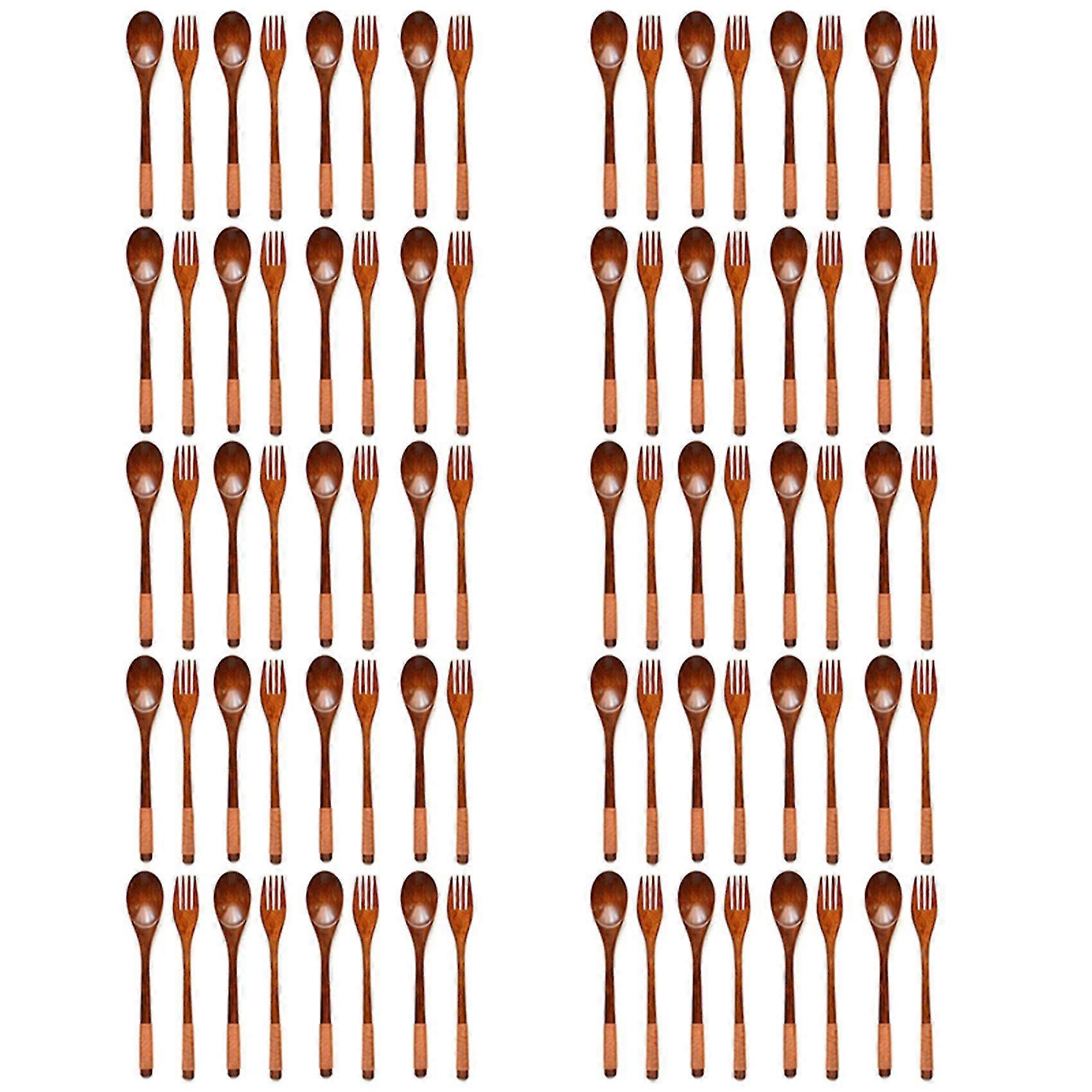 80 Pcs Wooden 9 Inchjapanese Spoon Fork Set Kitchen Tableware Natural Wood Cutlery Wooden Dinner Cu